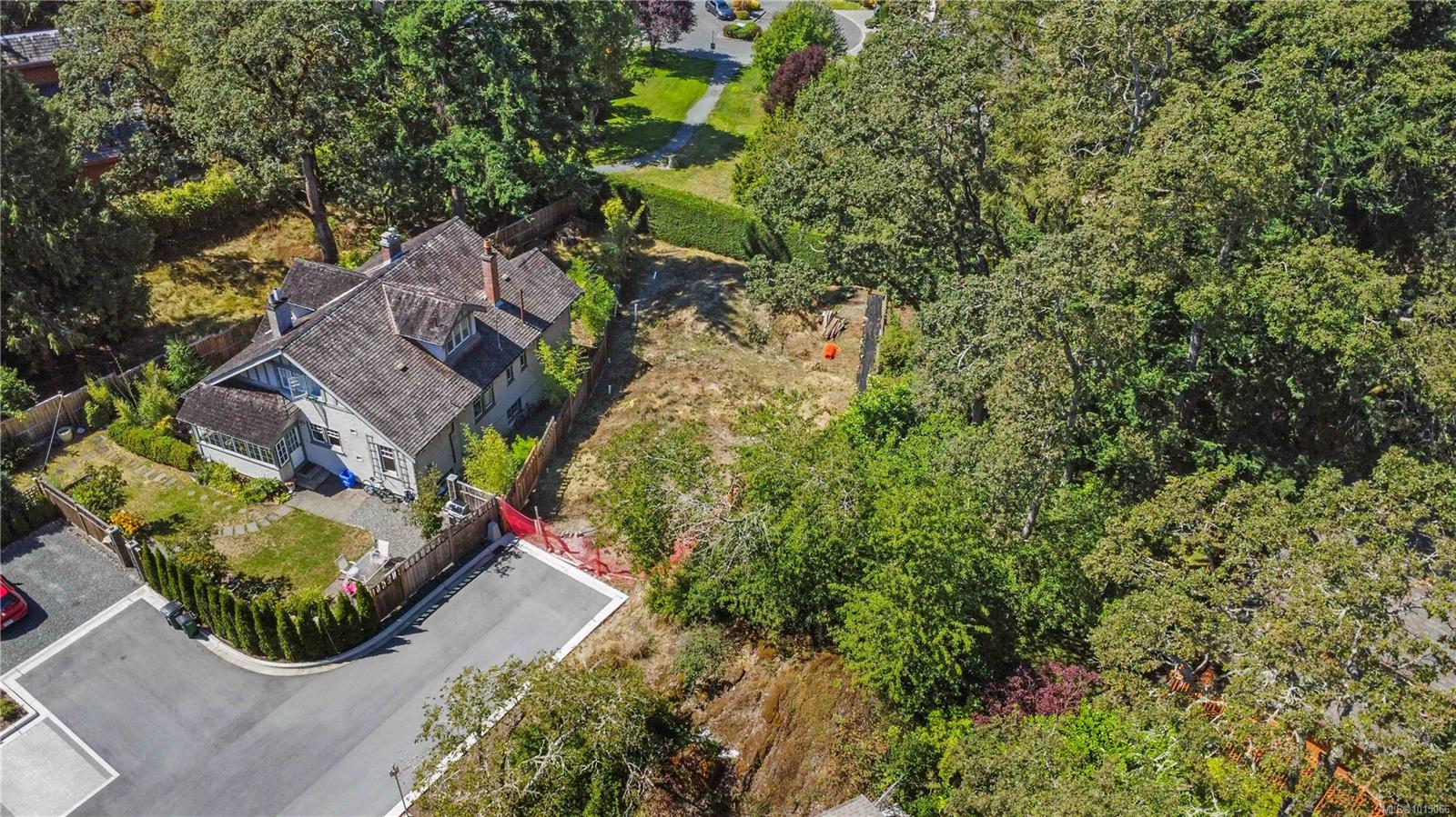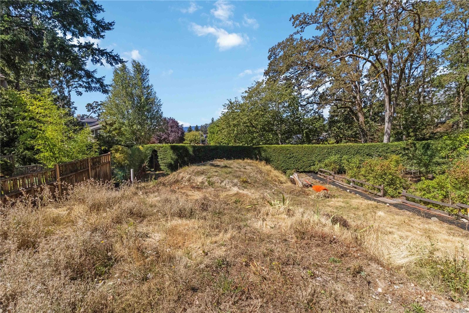 Nestled at the end of a quiet private lane, this 6,000+ sf lot offers a rare combination of sun, privacy, and natural beauty. Backing onto Rogers Court Park, the property enjoys a peaceful buffer of green space and natural landscaping for a serene garden retreat. With only one other home sharing the road, it feels secluded yet connected. This lot slopes down to the rear and lends itself to a level entry home. There are vibrant sunsets and westerly views toward the Sooke from this lot. Nearby are parks, Galloping Goose and Christmas Hill trails, access to major transit routes, shops, and restaurants. Families will appreciate the proximity to excellent schools, including Rogers Elementary. This fully serviced bare-land strata lot is zoned RS-6 (SSMUH eligible) and is an exceptional site to design and build your dream home.