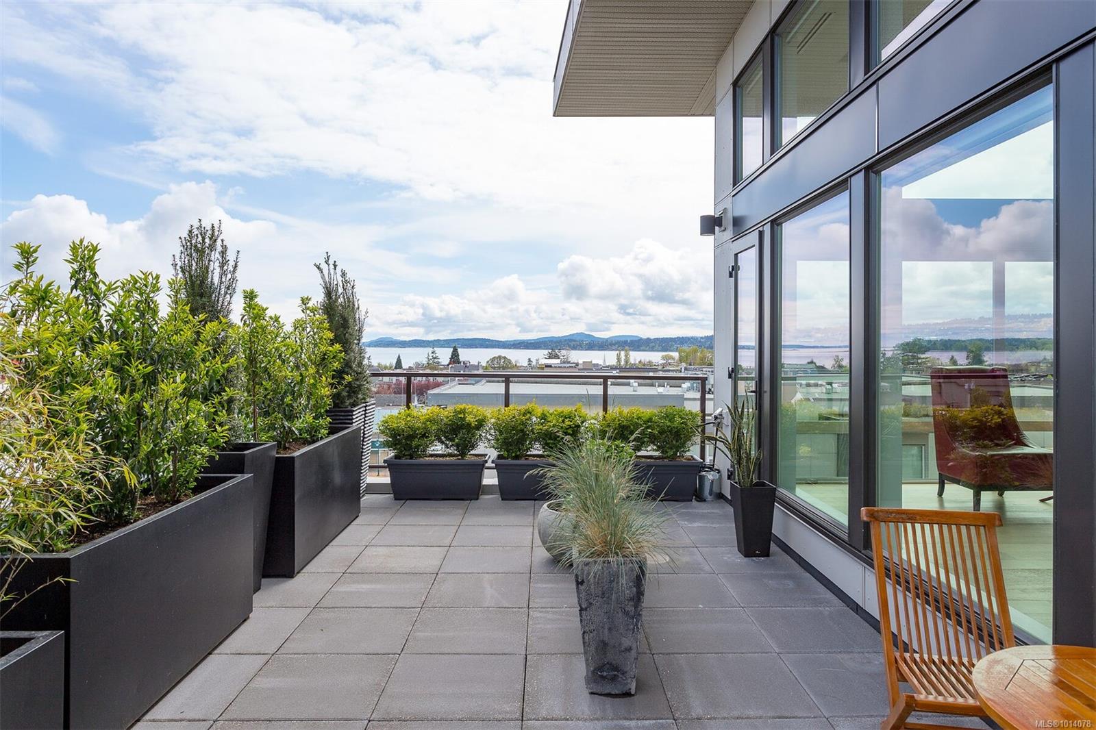 OPEN SAT / JAN 31 FROM: 12:30PM - 2PM. Ideally located just steps away from Vibrant Downtown Sidney & the 2.5 Km Waterfront Walkway. The coveted CAMEO PENTHOUSE occupying the South / West / East sides of the Building has been tastefully updated and shows better than new with Spectacular Views in all directions, boasting almost 2,500 sq ft of luxury living space on ONE LEVEL + 3 big decks for outdoor living, soaring 14' ceilings, huge windows, power blinds, sleek and modern designed kitchen is complemented by top-of-the-line fixtures and finishes featuring Fisher & Paykel appliances, Heat Pump / Air Conditioning, wide plank flooring and 2 parking spaces with EV charging. For those Discriminating Buyers who insist on having the best this trophy property delivers, truly a rare and Spectacular Residence that is sure to impress.