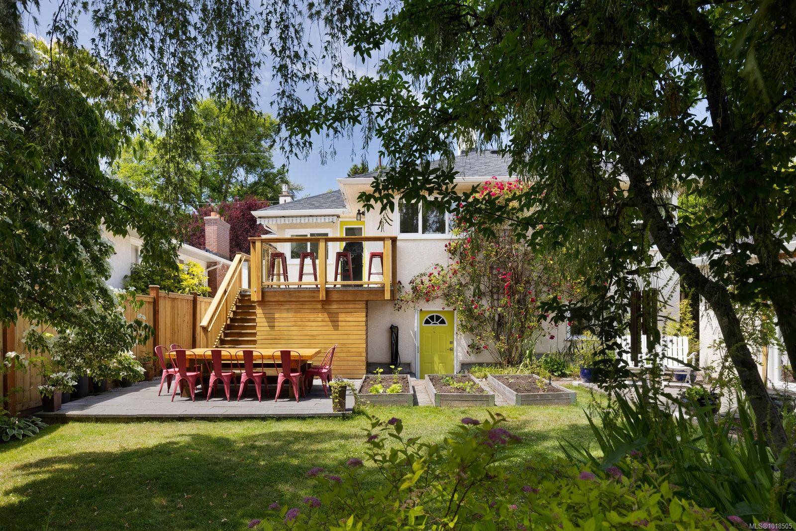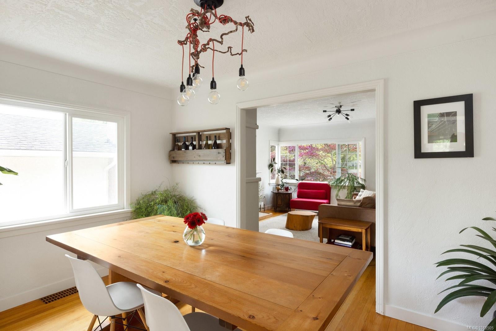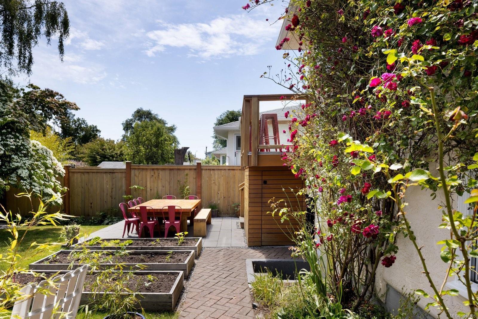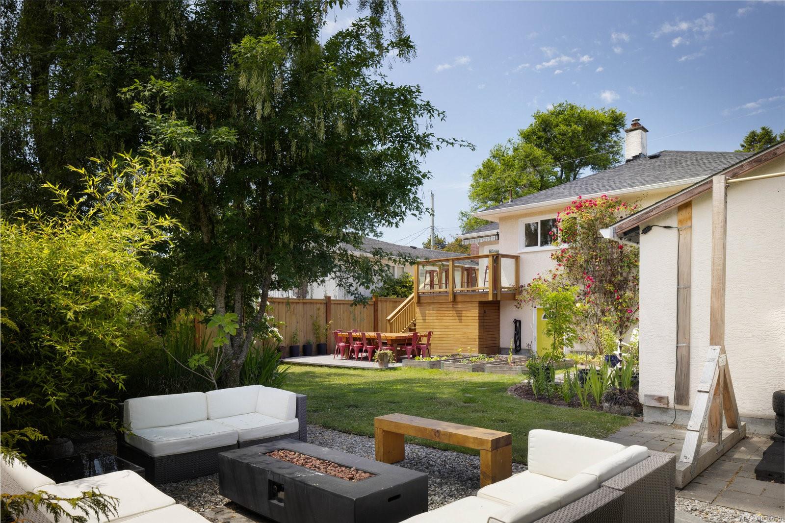 A rare opportunity in Oak Bay’s highly sought-after Estevan Village—just steps to the sandy shores of Willows Beach. This 4/5-bedroom, 2-bath home beautifully blends timeless charm with thoughtful modern updates for today’s lifestyle. A bright & functional layout offers comfort & versatility, featuring spacious living & dining areas, generous bedrooms, & a welcoming kitchen overlooking the private, sun-filled backyard. The full-height lower level, plumbed/wired for a kitchen (removed when sellers purchased), offers exceptional potential for additional living space, or an in-law suite. Outside, enjoy beautifully landscaped grounds with laneway access, a detached garage, & multiple outdoor sitting areas—perfect for entertaining or quiet relaxation. Updates incl a newer roof, vinyl windows, back deck, & efficient gas furnace. Just a short stroll to cafés, shops, schools, parks, golf, and marinas—embrace the unmatched Oak Bay lifestyle in one of Victoria’s most desirable neighbourhoods.