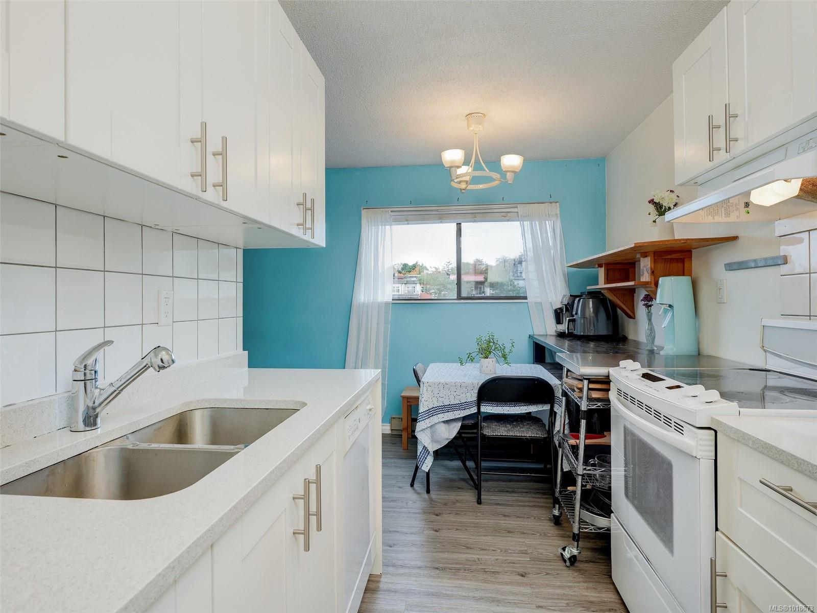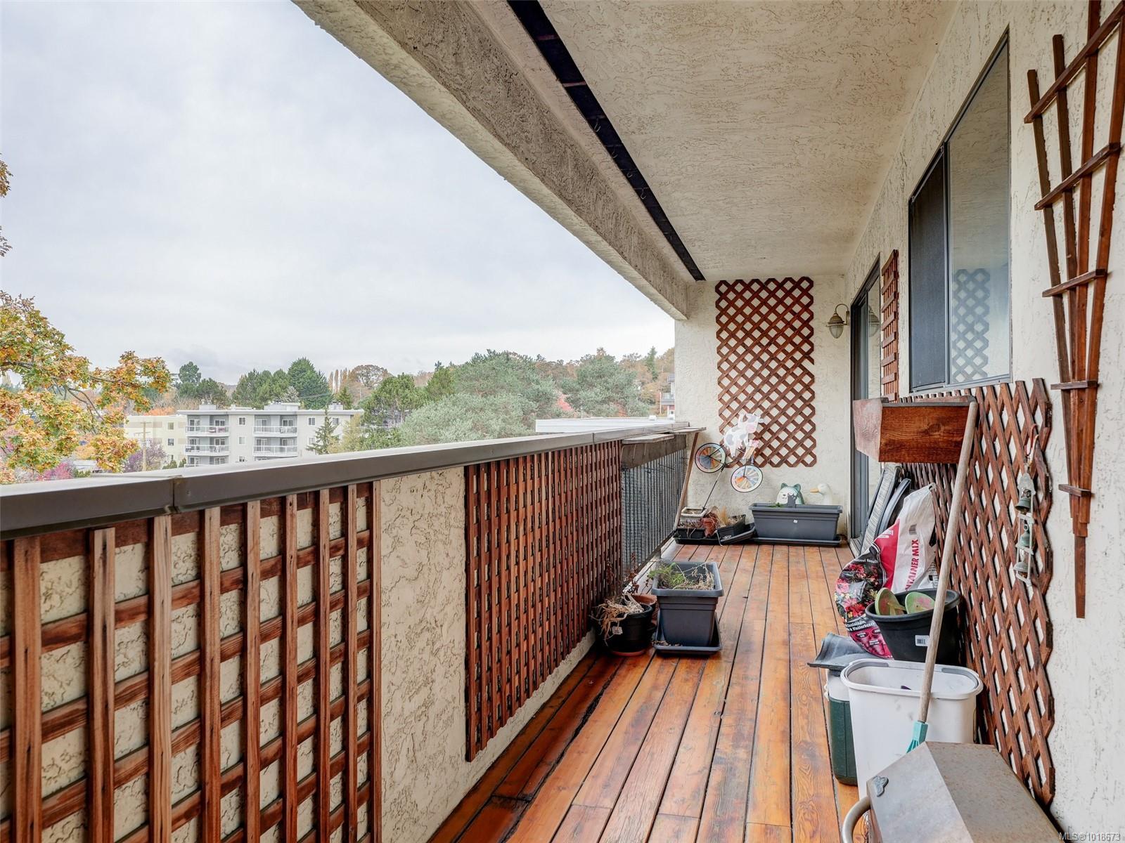 TOP FLOOR / CORNER / 2 BEDROOM HOME with pleasant views over treetops. Centrally located on a quiet Street just minutes from Downtown Victoria with a walk score of 88. This Spacious Condo offers affordable living in a great neighbourhood across the Street from 5 Acre Rutledge Park. Lots of Natural Light, Private 180 sq ft balcony for outdoor living, BBQ Permitted, separate storage locker adjacent unit, Pets welcome 2 Cats & 1 Dog up to 25 Lbs, walking distance to shopping & transit, West Exposure providing amazing sunsets with the Sooke Hills in the distance. Priced below assessment this property offers excellent value in a super convenient area of town.