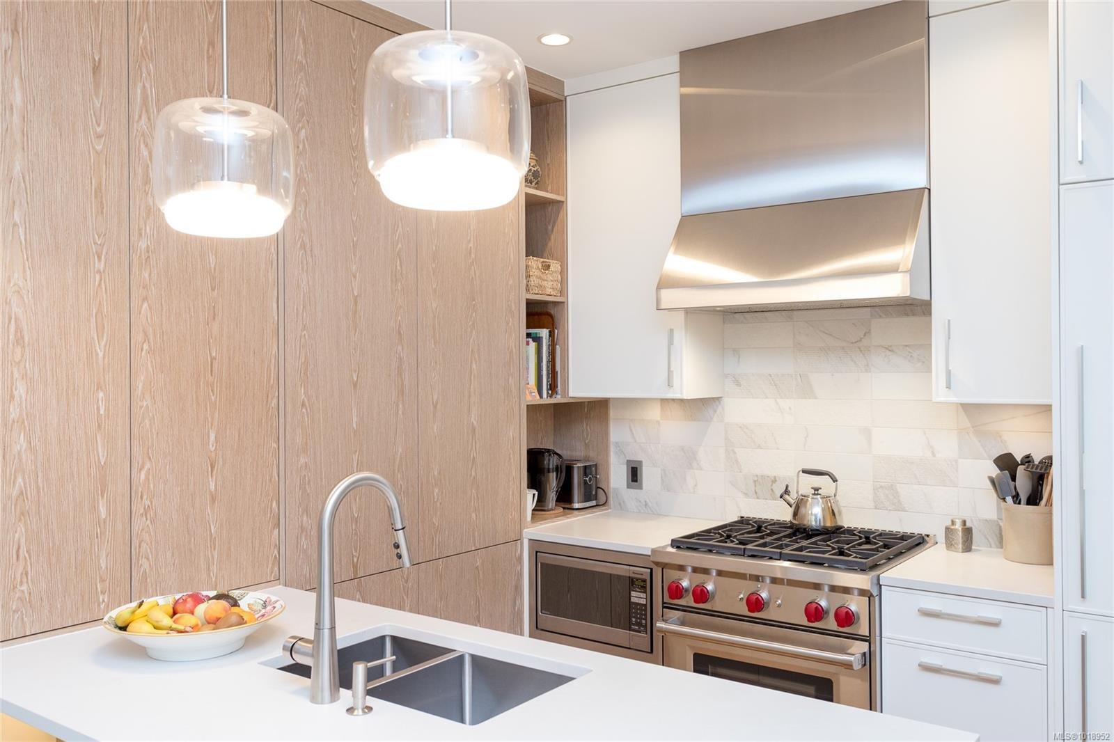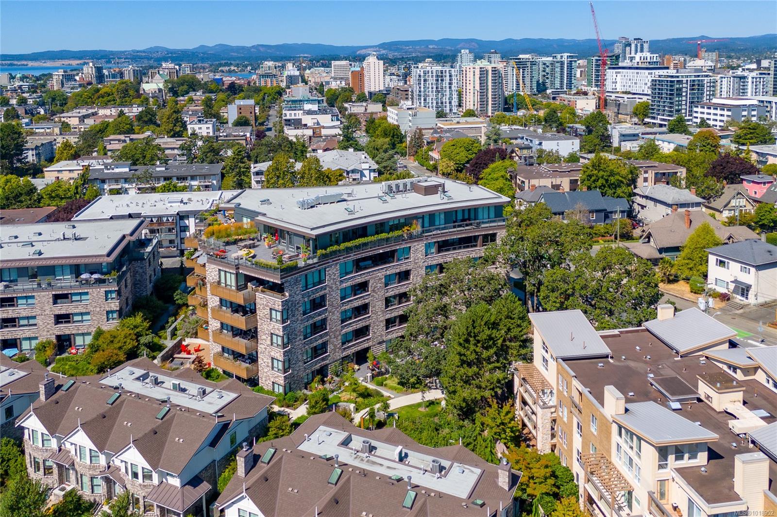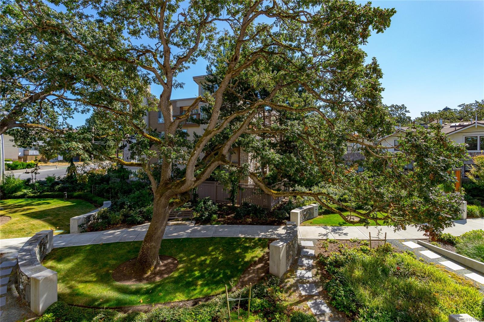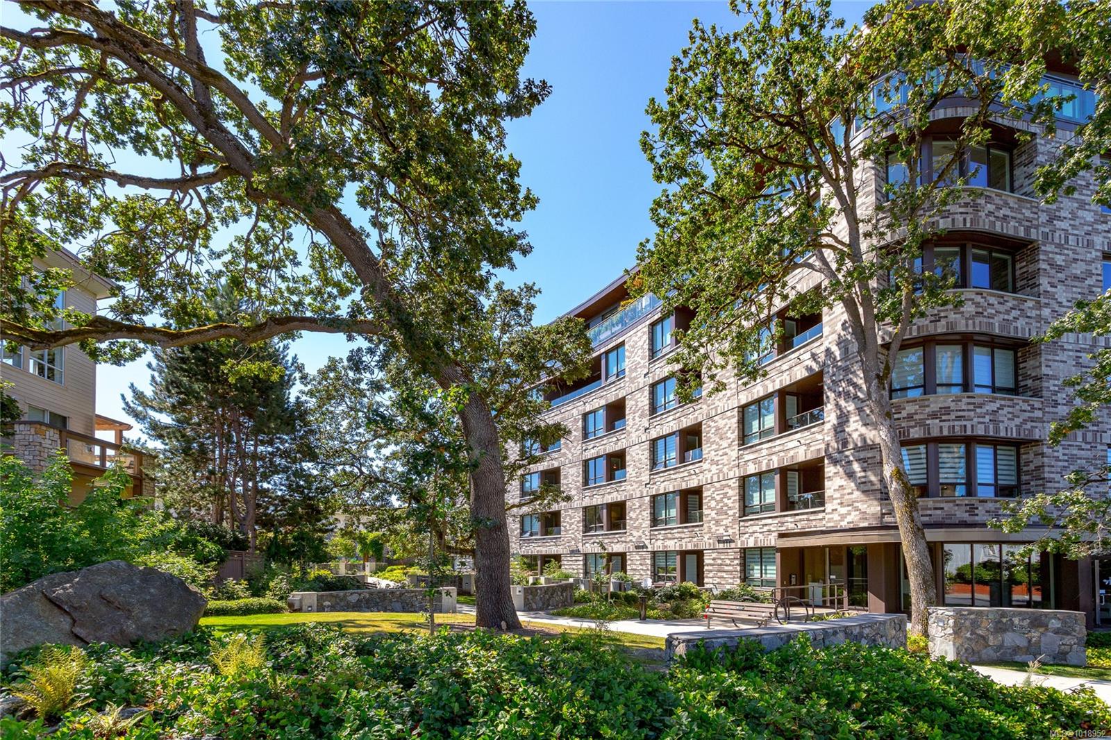 Welcome to Bellewood Park, an award-winning community by Abstract, set among majestic heritage Garry oaks on two acres of parkland in historic Rockland. Thoughtfully designed to bring nature to your doorstep, this steel & concrete building offers lasting quality and peace of mind. This Junior 2-bedroom, 2-bath home boasts over 800 sq. ft. of finished living space with hardwood floors, air conditioning, custom closets and a bright open-concept layout. The gourmet kitchen features custom cabinetry, a Wolf gas range, Fisher & Paykel French door refrigerator and double-drawer dishwasher. The spacious primary includes a walk-in closet, while the spa-inspired bathroom offers in-floor heated tile. Step outside to your private heated balcony for outdoor enjoyment year-round. Pet friendly, with secure underground parking, storage locker, bike & kayak areas. Walk to downtown restaurants, Cook Street Village and Dallas Road to enjoy ocean views and seaside paths.