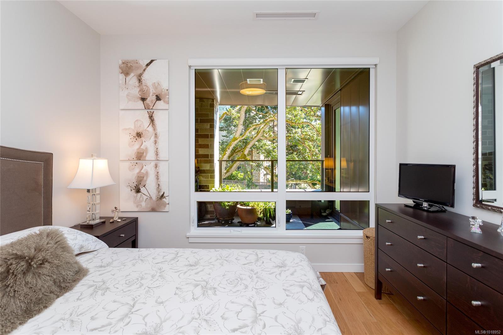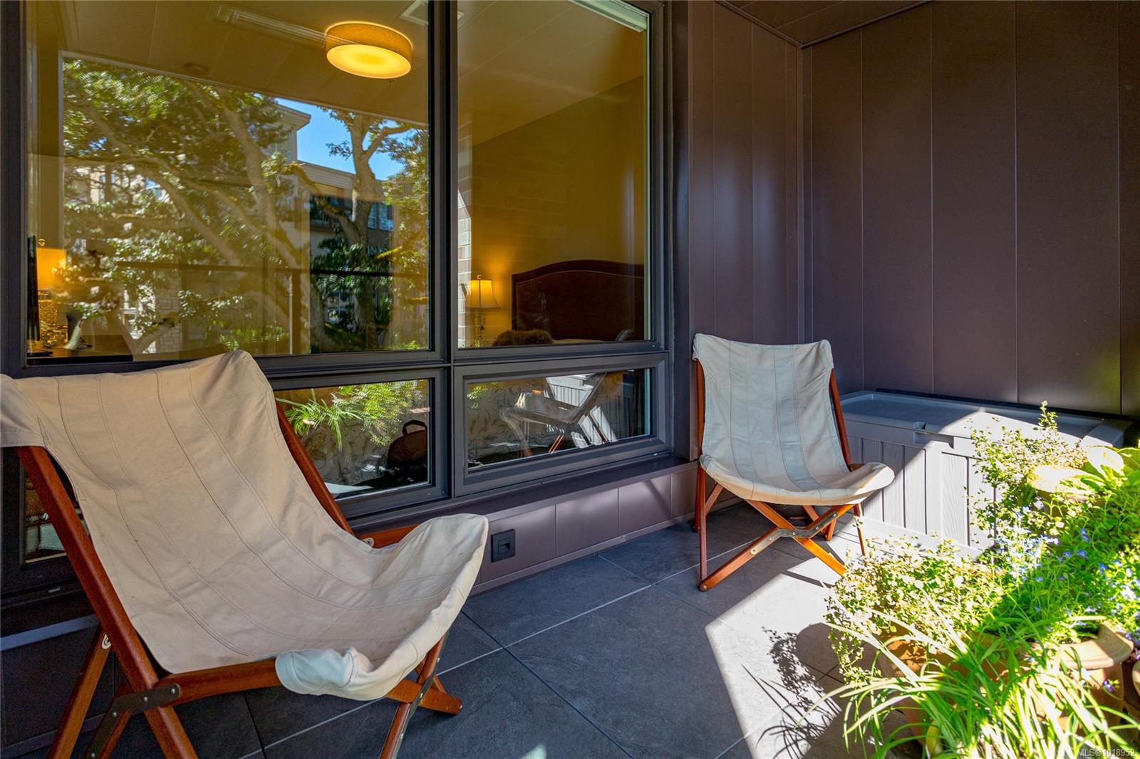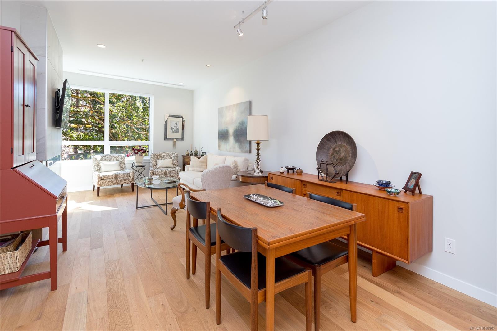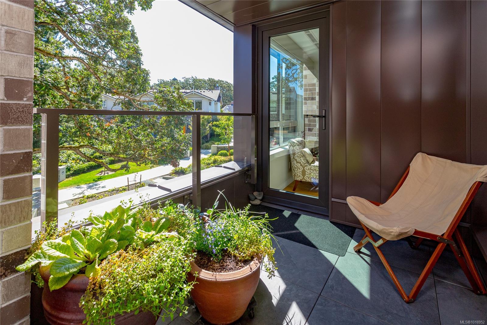 Welcome to Bellewood Park, an award-winning community by Abstract, set among majestic heritage Garry oaks on two acres of parkland in historic Rockland. Thoughtfully designed to bring nature to your doorstep, this steel & concrete building offers lasting quality and peace of mind. This Junior 2-bedroom, 2-bath home boasts over 800 sq. ft. of finished living space with hardwood floors, air conditioning, custom closets and a bright open-concept layout. The gourmet kitchen features custom cabinetry, a Wolf gas range, Fisher & Paykel French door refrigerator and double-drawer dishwasher. The spacious primary includes a walk-in closet, while the spa-inspired bathroom offers in-floor heated tile. Step outside to your private heated balcony for outdoor enjoyment year-round. Pet friendly, with secure underground parking, storage locker, bike & kayak areas. Walk to downtown restaurants, Cook Street Village and Dallas Road to enjoy ocean views and seaside paths.