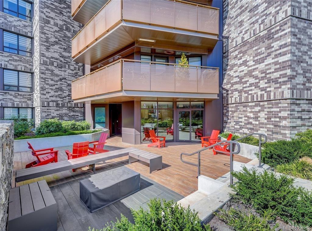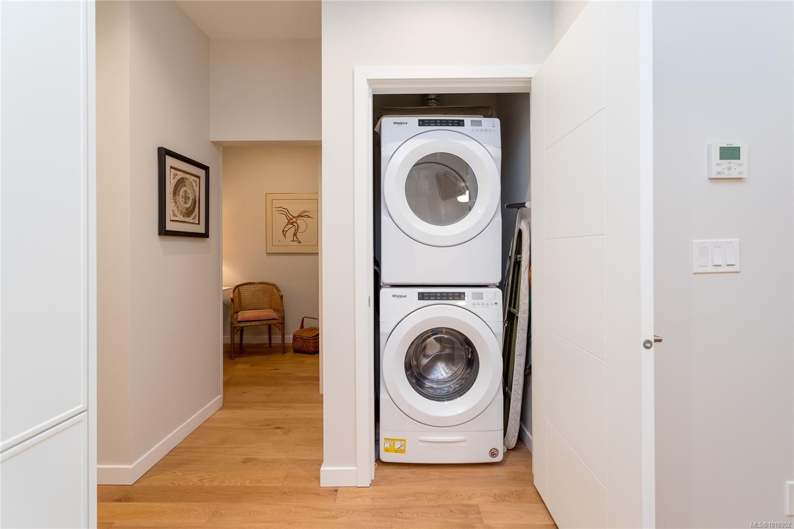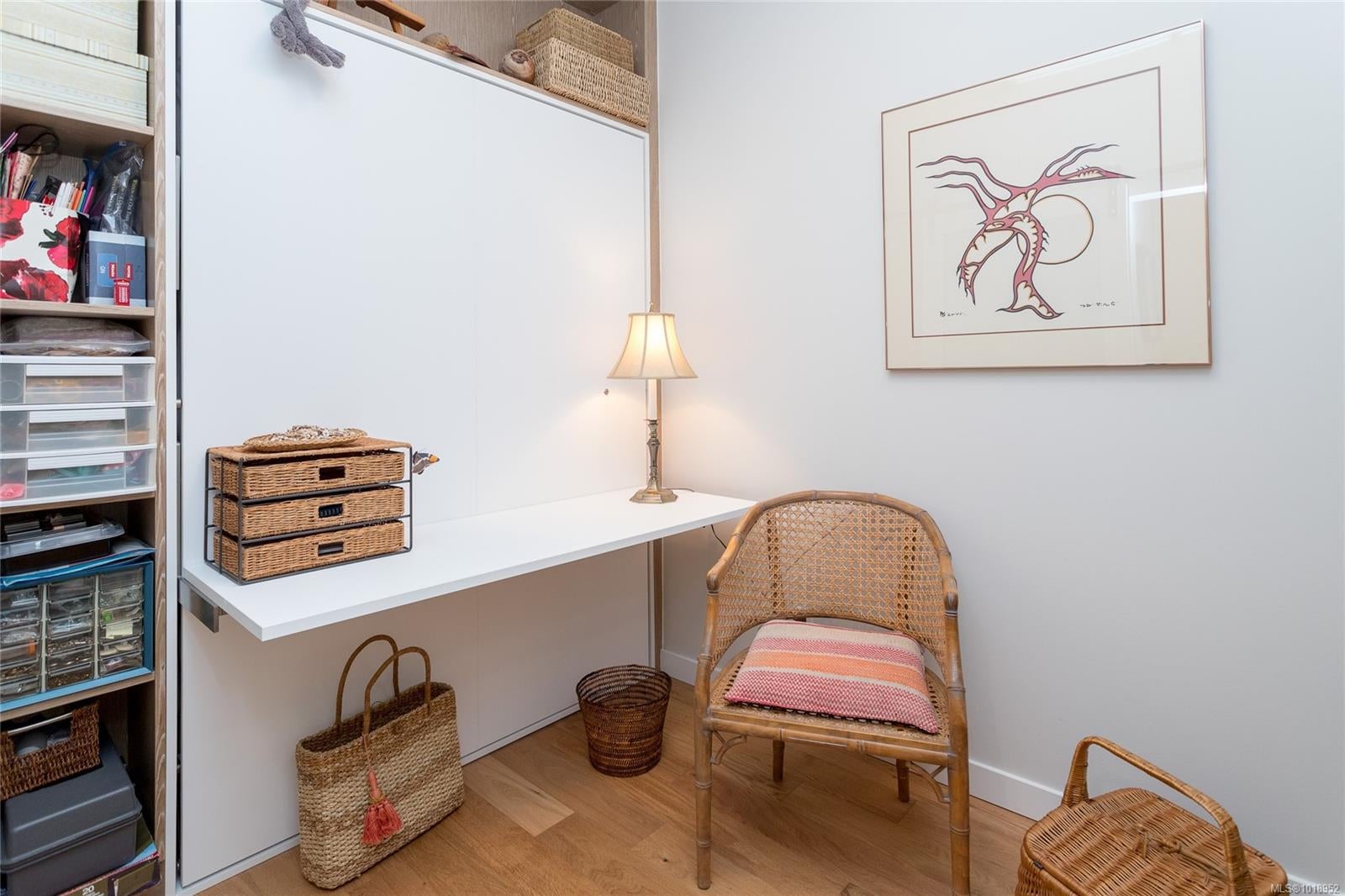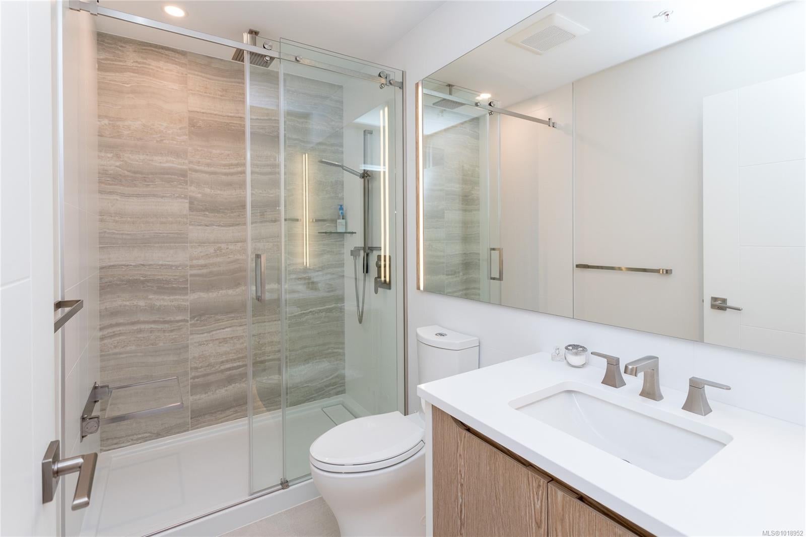 Welcome to Bellewood Park, an award-winning community by Abstract, set among majestic heritage Garry oaks on two acres of parkland in historic Rockland. Thoughtfully designed to bring nature to your doorstep, this steel & concrete building offers lasting quality and peace of mind. This Junior 2-bedroom, 2-bath home boasts over 800 sq. ft. of finished living space with hardwood floors, air conditioning, custom closets and a bright open-concept layout. The gourmet kitchen features custom cabinetry, a Wolf gas range, Fisher & Paykel French door refrigerator and double-drawer dishwasher. The spacious primary includes a walk-in closet, while the spa-inspired bathroom offers in-floor heated tile. Step outside to your private heated balcony for outdoor enjoyment year-round. Pet friendly, with secure underground parking, storage locker, bike & kayak areas. Walk to downtown restaurants, Cook Street Village and Dallas Road to enjoy ocean views and seaside paths.