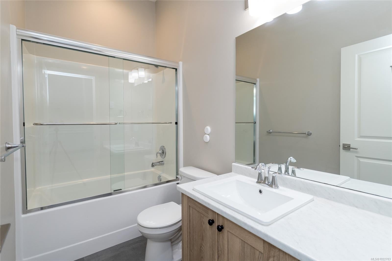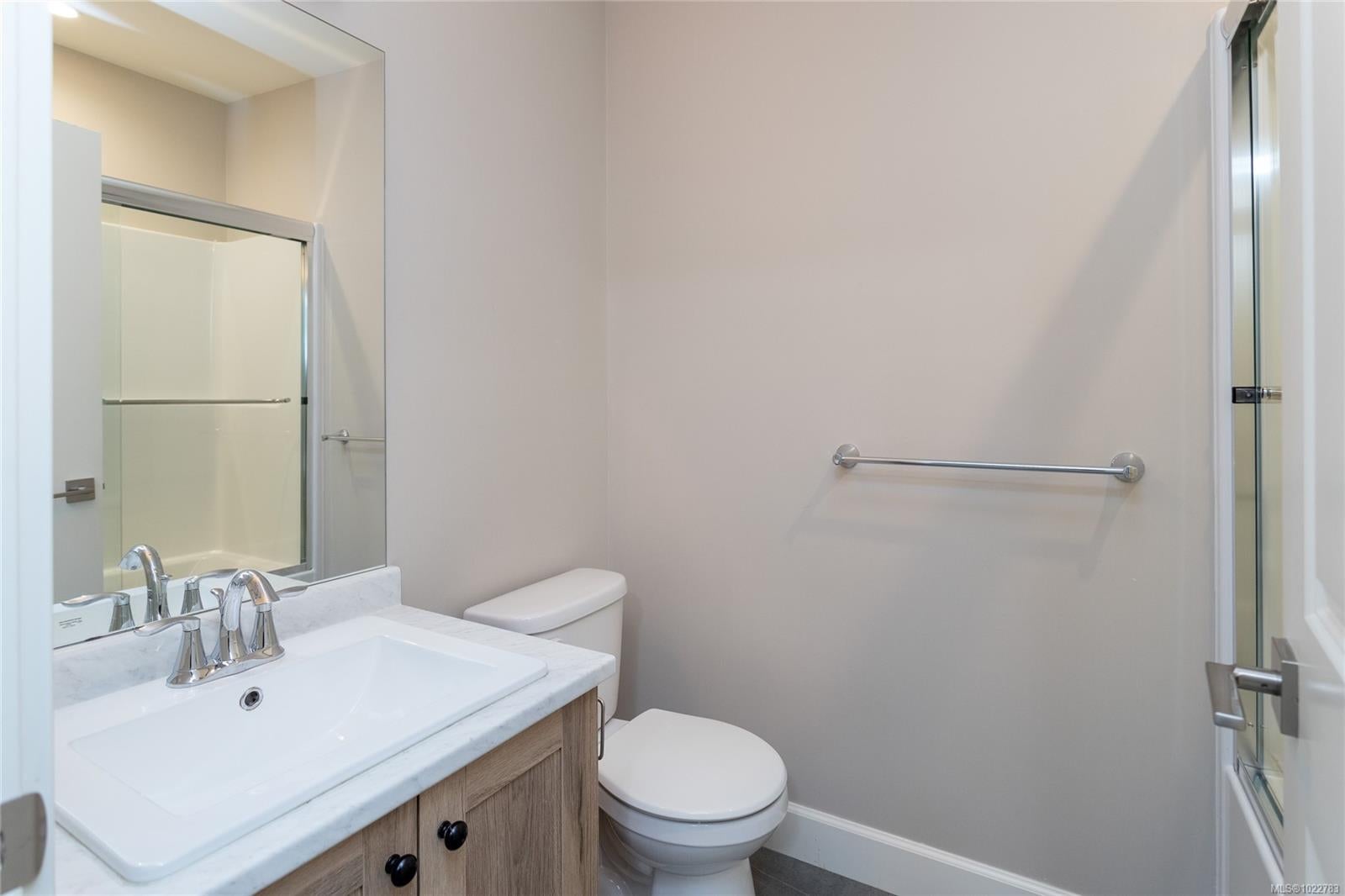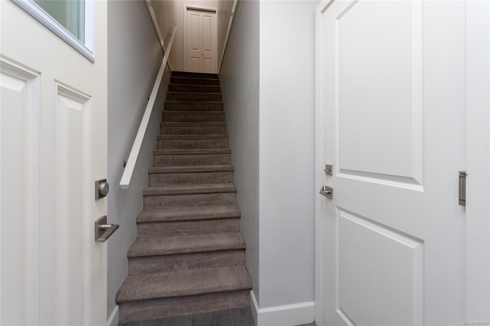 Beautifully designed 3-bedroom, 3-bathroom in the sought-after Luxton Flats community, built in 2021 & located in the heart of family-friendly Happy Valley. Offering over 1,300 sq. ft. of well-planned living space, this home blends modern design w everyday comfort. Open-concept main level features 9’ ceilings & stylish kitchen w quartz countertops, subway tile backsplash, stainless steel appliances + gas range, flowing seamlessly into the dining & living areas—ideal for both entertaining & daily living. Step outside to a quiet balcony w natural gas BBQ hookup, perfect for morning coffee or year-round enjoyment. Upstairs, the spacious primary bedroom offers a walk-in closet & ensuite, second large bedroom, dedicated office/third bedroom & a full bathroom. Other features include ductless heat pumps, gas hot water, tandem 2 car garage, ample storage & direct access to a fully fenced yard—perfect for kids or pets. Convenient location close to parks, schools & the Galloping Goose Trail.