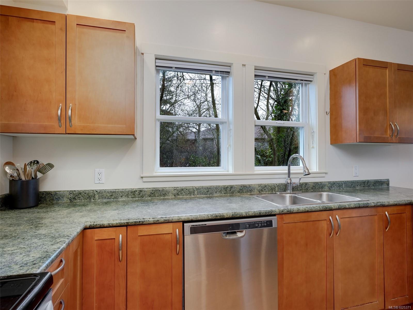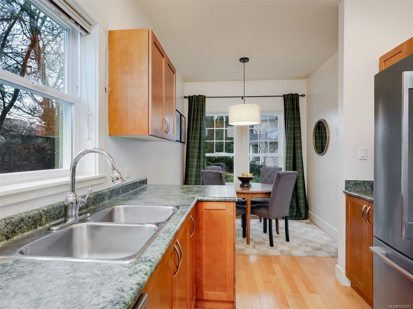 CENTRALLY LOCATED FAMILY HOME. Exceptional value this Royal Oak strata home featuring 4 bedrooms, 3 bathrooms. The primary bedroom is on the main floor with a walk-in closet and a 4 piece ensuite. Kitchen offers a cozy eating area with newer stainless steel appliances. The dining room is open to the living room with natural gas fireplace. A great space for entertaining with easy access to the sliding doors which opens to your private fenced yard. A perfect place for kids and pets to play. A 2 piece powder room, laundry and a single car garage finish off this level. Upstairs you will find 3 additional bedrooms, full 4 piece main bath. Close to Royal Oak and Broadmead Shopping, easy transit, Commonwealth Place, restaurants, and schools. Short commute to UVic, downtown, airport and ferries. Location can't be beat!