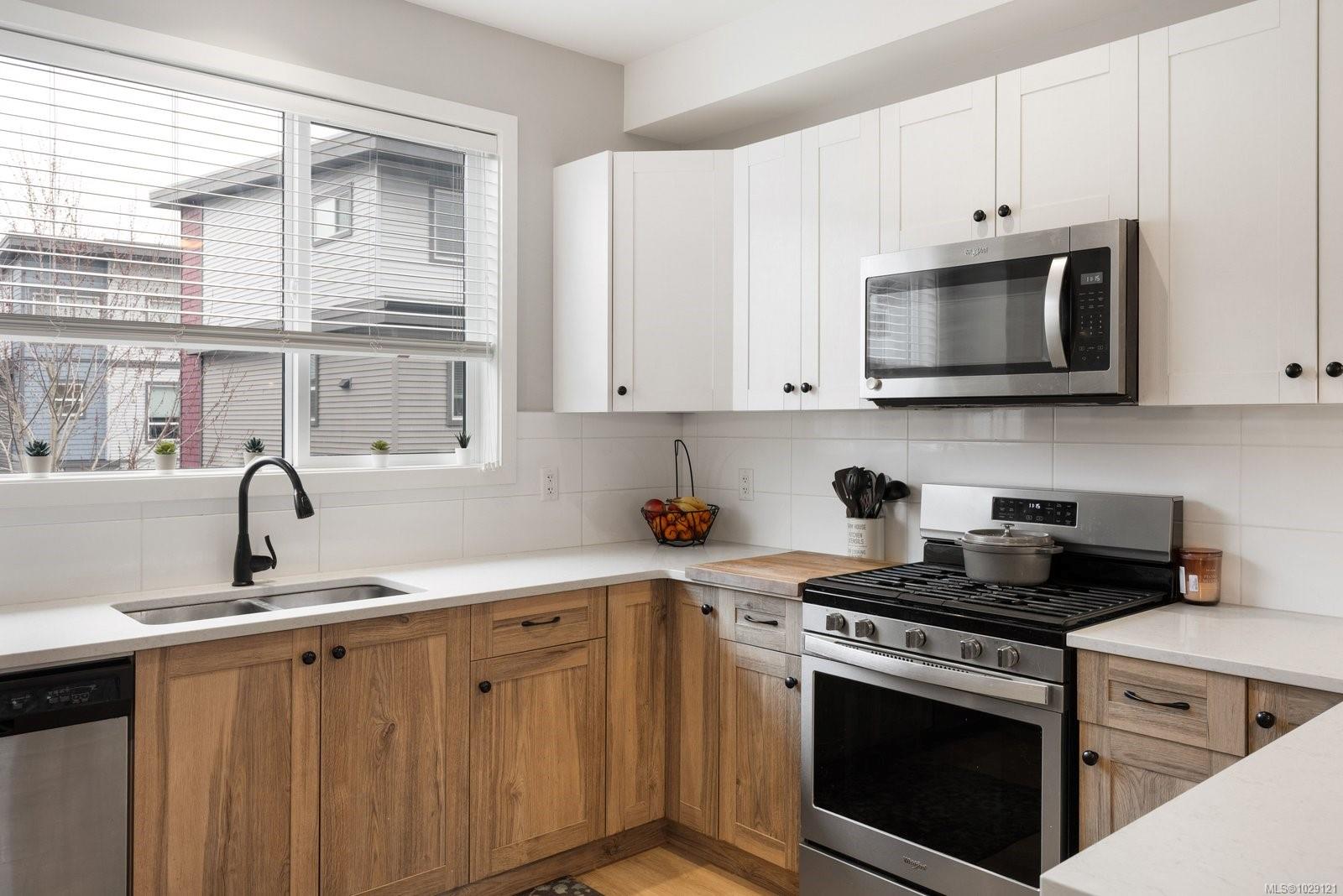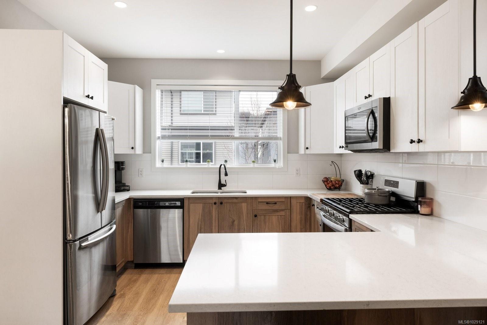 Bright corner-unit featuring 3 beds, 3 baths, + double garage, in the popular Luxton neighbourhood of Langford. This well-designed corner unit is perfect for families or first-time buyers. The entry level features an extended garage with plenty of room for storage, plus access to an easy-care, fully usable yard. The main level is filled with natural light and boasts a generous kitchen with eating area, and a cozy living room complete with a electric fireplace and access to a balcony ideal for relaxing or entertaining. Upstairs you’ll find three bedrooms, including a comfortable primary suite with walk-in closet and ensuite, along with two additional bedrooms, a full bathroom, and convenient laundry. Located just minutes from Happy Valley Elementary, parks, & transit, with easy access to all of Langford’s amenities (only 10 minutes away) & just 20 minutes to downtown Victoria. A fantastic opportunity for those entering the market or anyone seeking a low-maintenance place to call home.