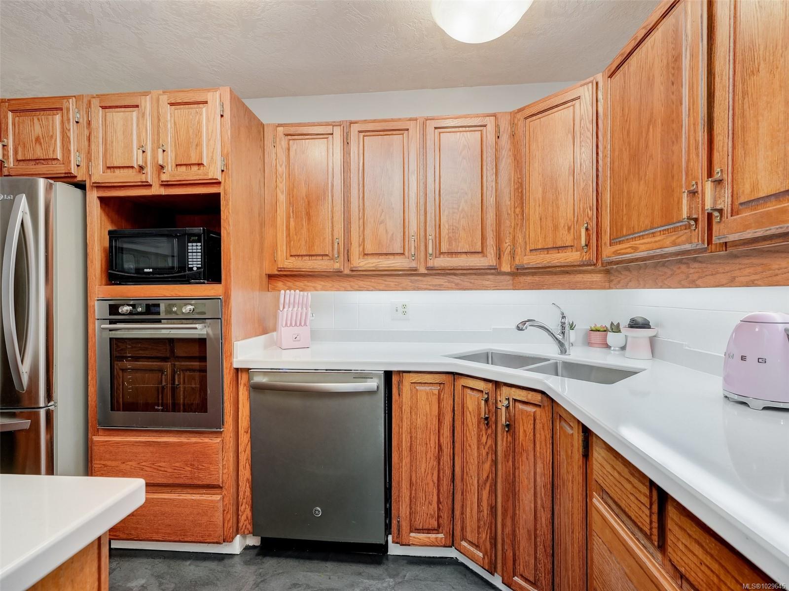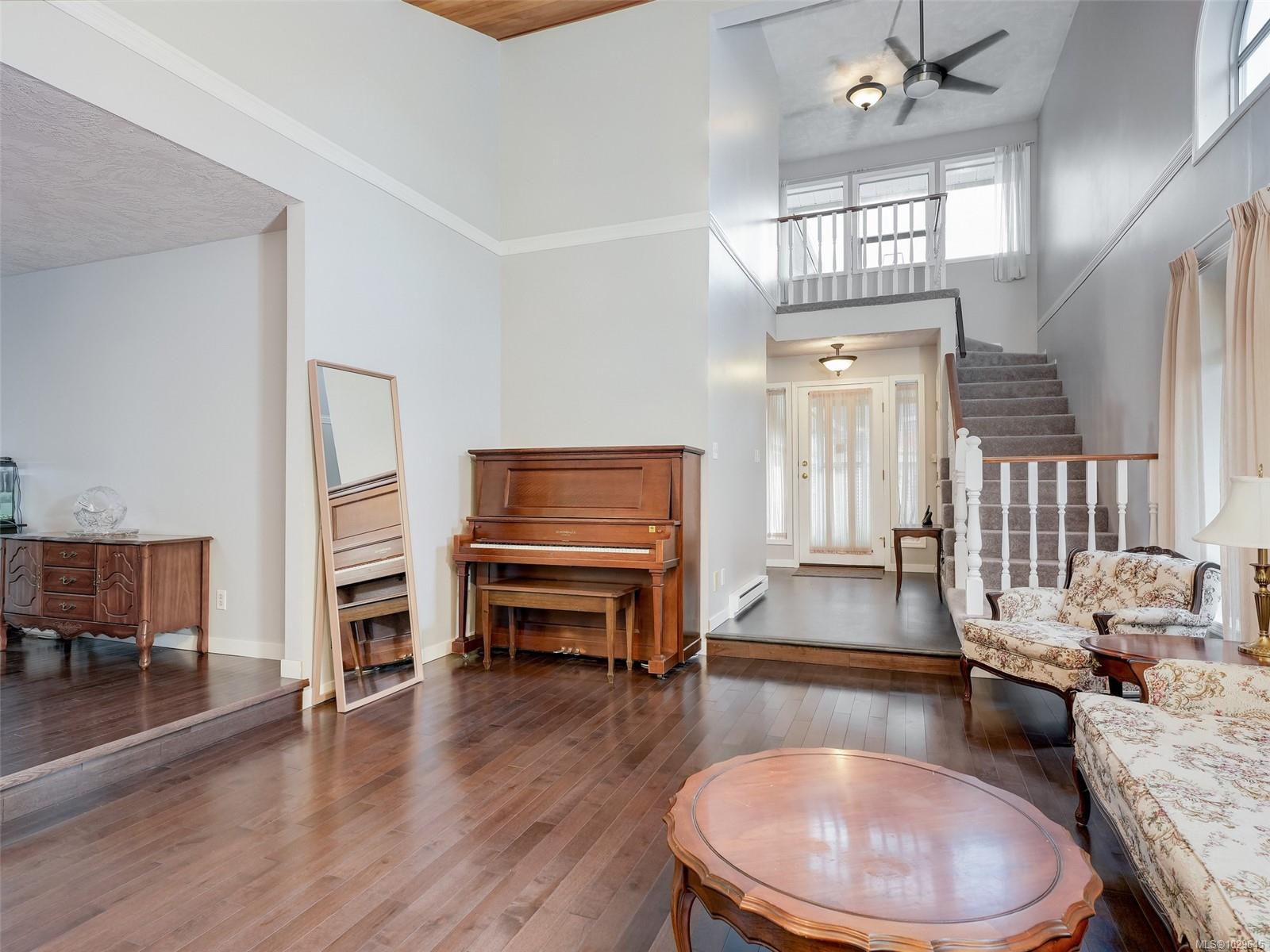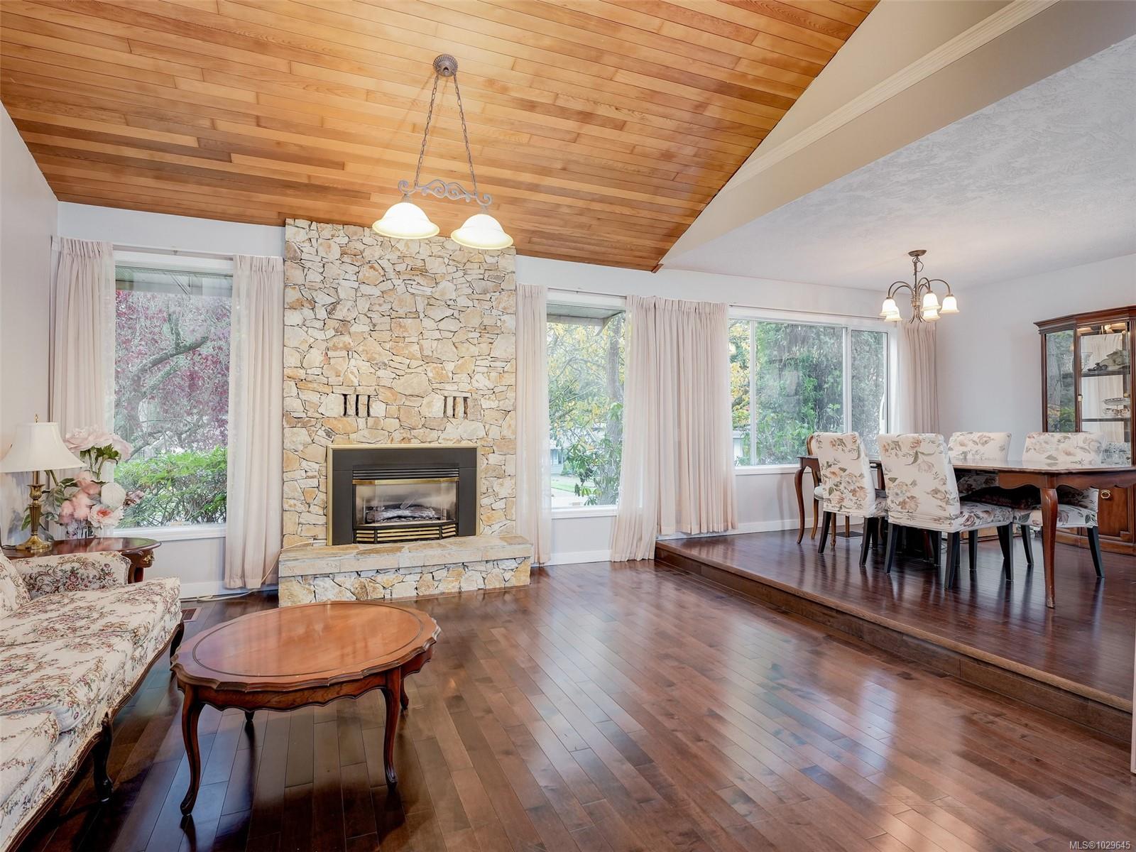 SPACIOUS BROADMEAD HOME ON A CORNER LOT. Situated in the highly desirable Scottswood neighbourhood in Broadmead this large family home offers 3 bedrooms and 3 bathrooms with many updates over the years. You will appreciate the openness of the living space flooded with natural light and 14' vaulted ceilings in the living room featuring a n/g fireplace with beautiful stonework adjacent to the separate dining area. The well laid out kitchen has newer appliances, quartz countertop and refreshed cabinetry with an eating area that opens to the solarium. Cozy up in the family room with a free standing n/g fireplace and A/C to keep you cool in the summer, and the powder room finishes off this level. Upstairs the primary bedroom features hardwood flooring, large walk-in closet and 4 piece ensuite with two additional bedrooms, 4 piece main bath and convenient laundry. Plenty of storage and a double car garage. New hot water tank, new gutters and leaf filters, freshly painted interior & new carpets. Close to Broadmead Shopping Center, Kentwood Park easy commute to Uvic and minutes to downtown, airport and ferries.