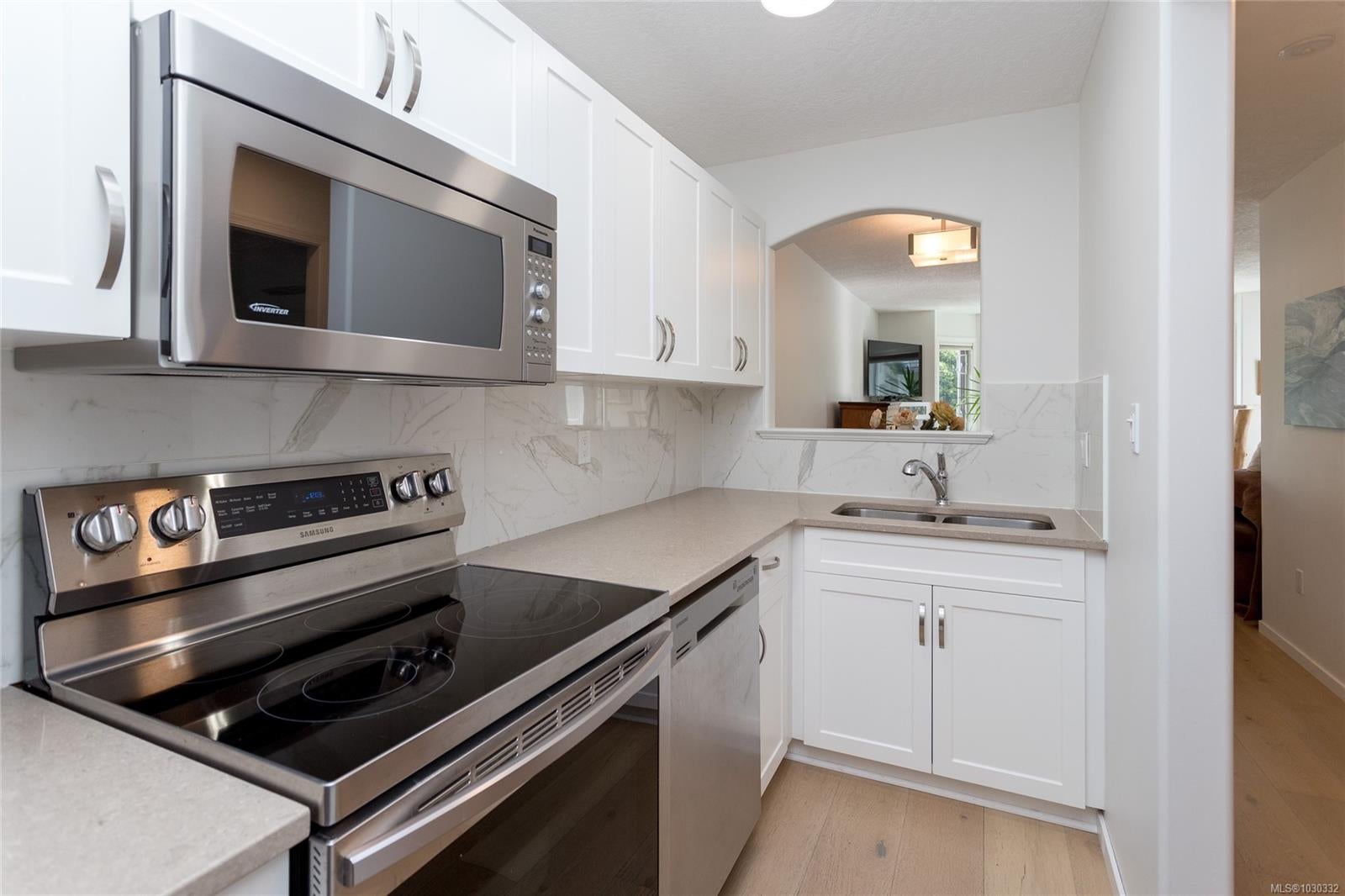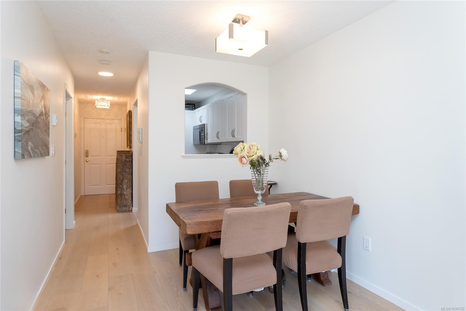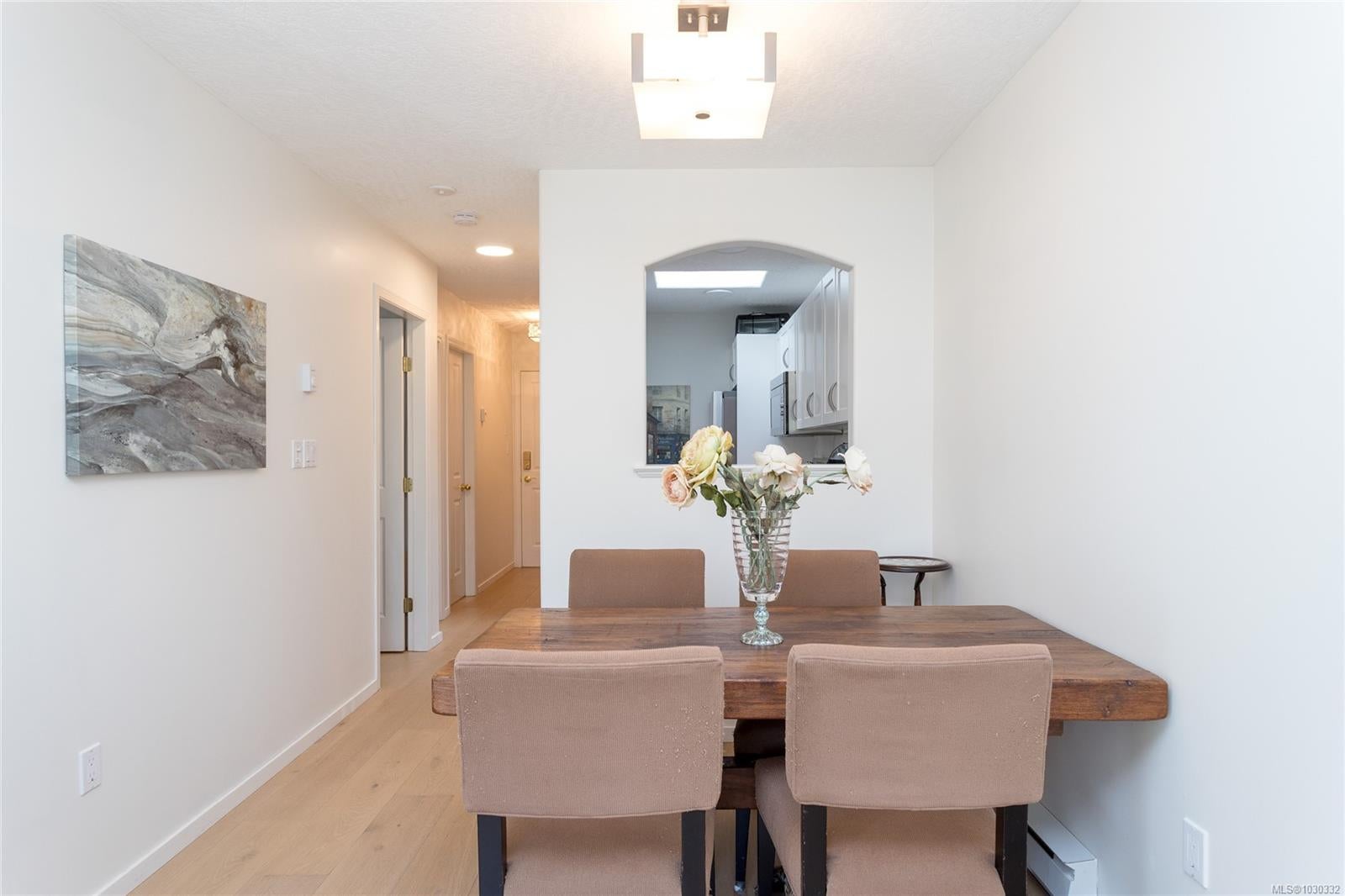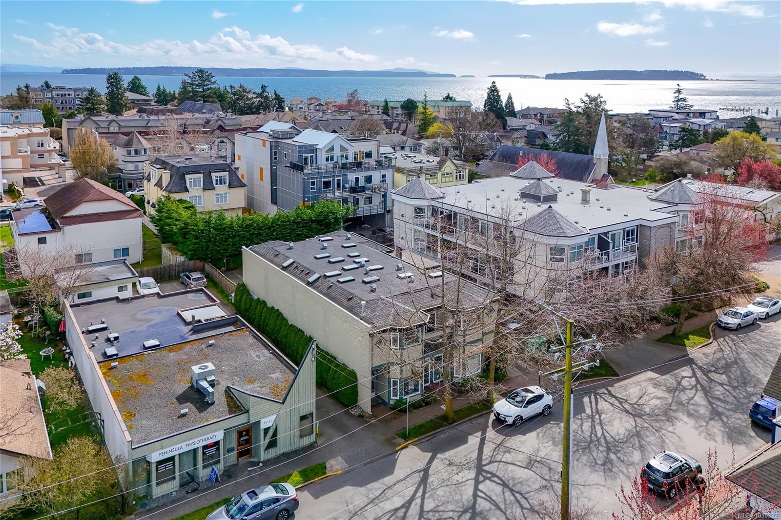 Welcome to this bright and beautifully maintained top-floor condo in the heart of Sidney by the Sea, tucked within a rare boutique building just steps to shops, cafés, restaurants, and the waterfront. You will be impressed with the natural light that fills this corner unit, creating a warm and inviting atmosphere throughout. The kitchen has been tastefully updated with high-end stainless steel appliances, while the open-concept living area features a cozy gas fireplace and seamless access to a private, sunny balcony—perfect for morning coffee, BBQs, or a touch of greenery. Boasting new high-end Pravada engineered wood flooring, this home also offers a rare, private garage ideal for parking, storage, or even a workshop space for bikes, kayaks, or hobbies. In-suite laundry adds everyday convenience. Located in a quiet, pet-friendly building with no size restrictions and low strata fees, this is an exceptional opportunity for downsizers, first-time buyers, or those seeking a carefree seaside lifestyle. Enjoy the very best of Sidney living right at your doorstep.