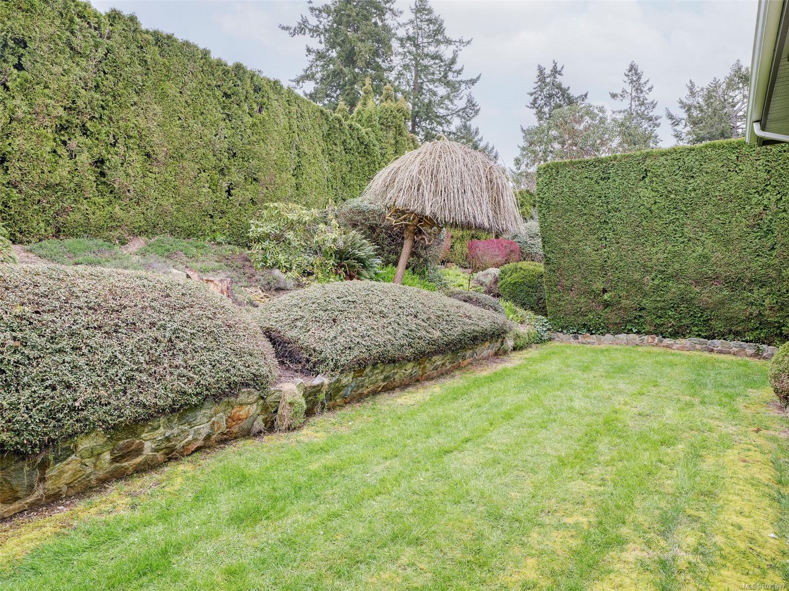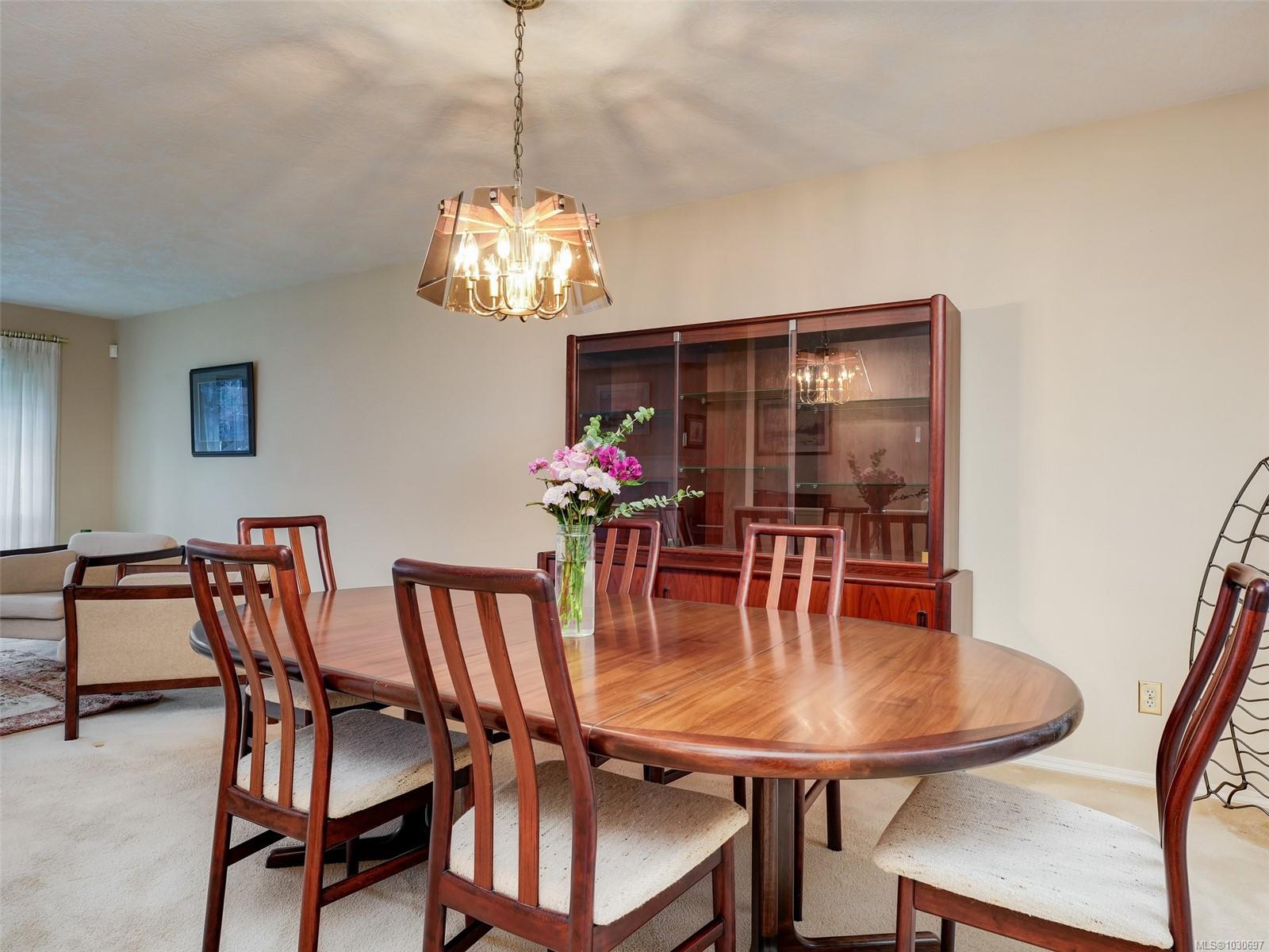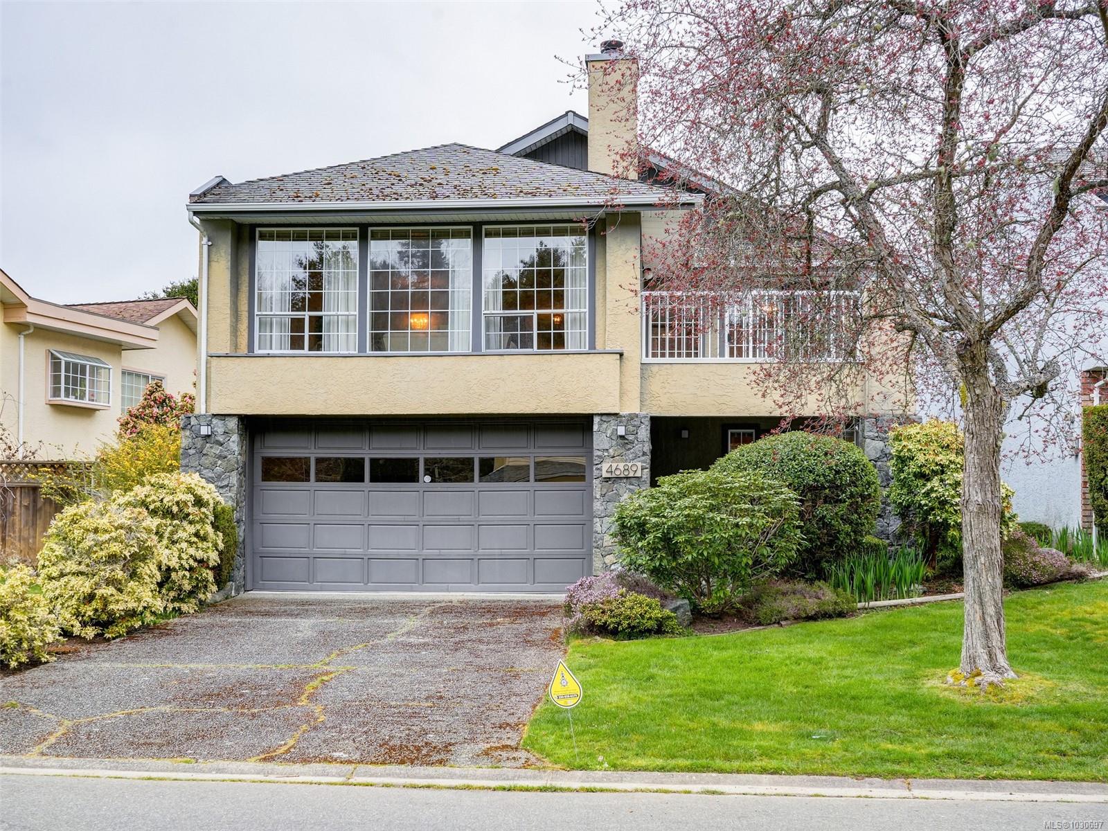 Tucked away on a quiet Broadmead cul-de-sac, this bright and beautifully maintained home impresses from the moment you step inside. Gleaming oak hardwood flows up the staircase and along the hallway, setting a warm and welcoming tone throughout. The large eat-in kitchen features oak cabinetry and patio doors opening to a front enclosed deck, while a spacious family room off the kitchen leads to a side deck. The generous in-line living and dining room with fireplace is anchored by a bright sunroom — complete with skylight and three patio doors. Two bedrooms are well served by two full bathrooms, with the primary suite enjoying a private 3-piece ensuite with glassed shower stall. Built-in vacuum throughout. Outside, the professionally landscaped and well maintained grounds feature a private rear yard with underground sprinklers, and the double garage provides access to a full stand-up basement storage area at the rear — a rare and practical bonus.