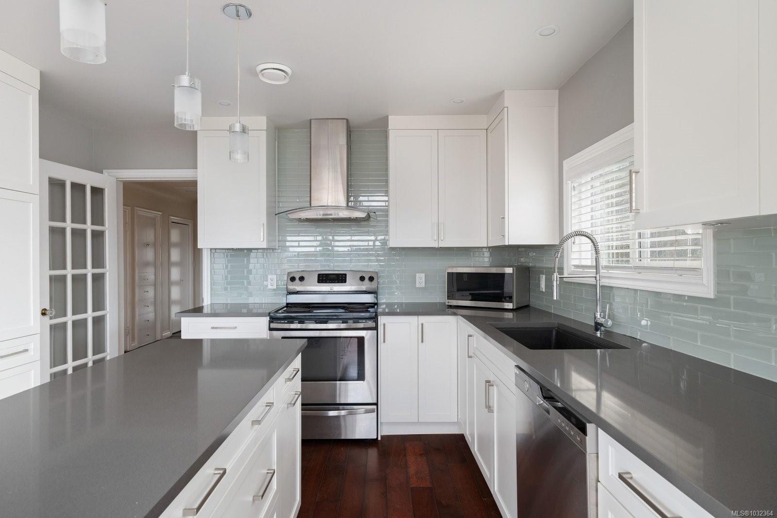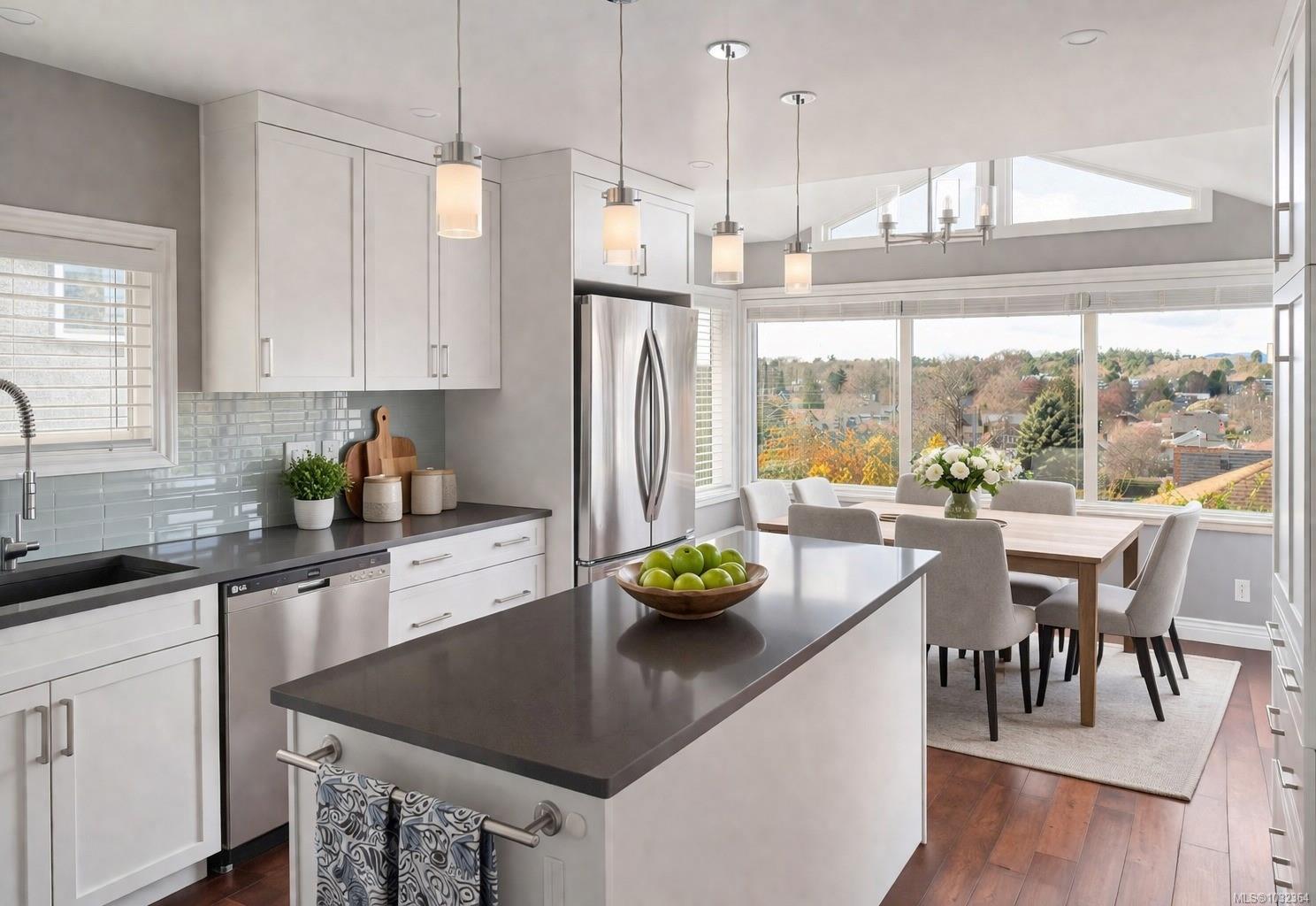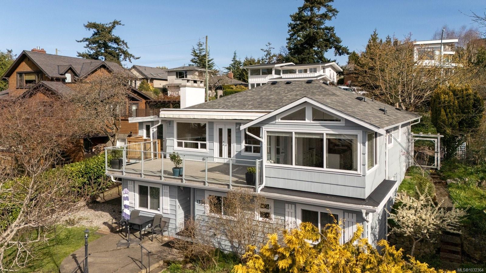 Enjoy sweeping westerly city and mountain views from this beautifully appointed home in sought-after Fairfield. Offering 5 bedrooms and 3 bathrooms, including a main-level primary suite with walk-in closet and full ensuite, this home provides excellent comfort and flexibility for families or multi-generational living. The bright main living area features large windows and a warm, inviting atmosphere, while the recently renovated kitchen includes a charming breakfast nook perfectly positioned to take in the views. A second bedroom and dedicated office adds valuable space for guest or working from home. The lower level offers 3 bedrooms and a second kitchen, ideal for extended family, guests, or rental potential. Outside, enjoy a private English garden-inspired yard with lush landscaping, multiple seating areas, and a spacious deck. Just minutes to Moss Rock Park, Fairfield Plaza, and Dallas Road waterfront. This is a stunning home in a one of Victoria’s most favourable neighbourhoods.